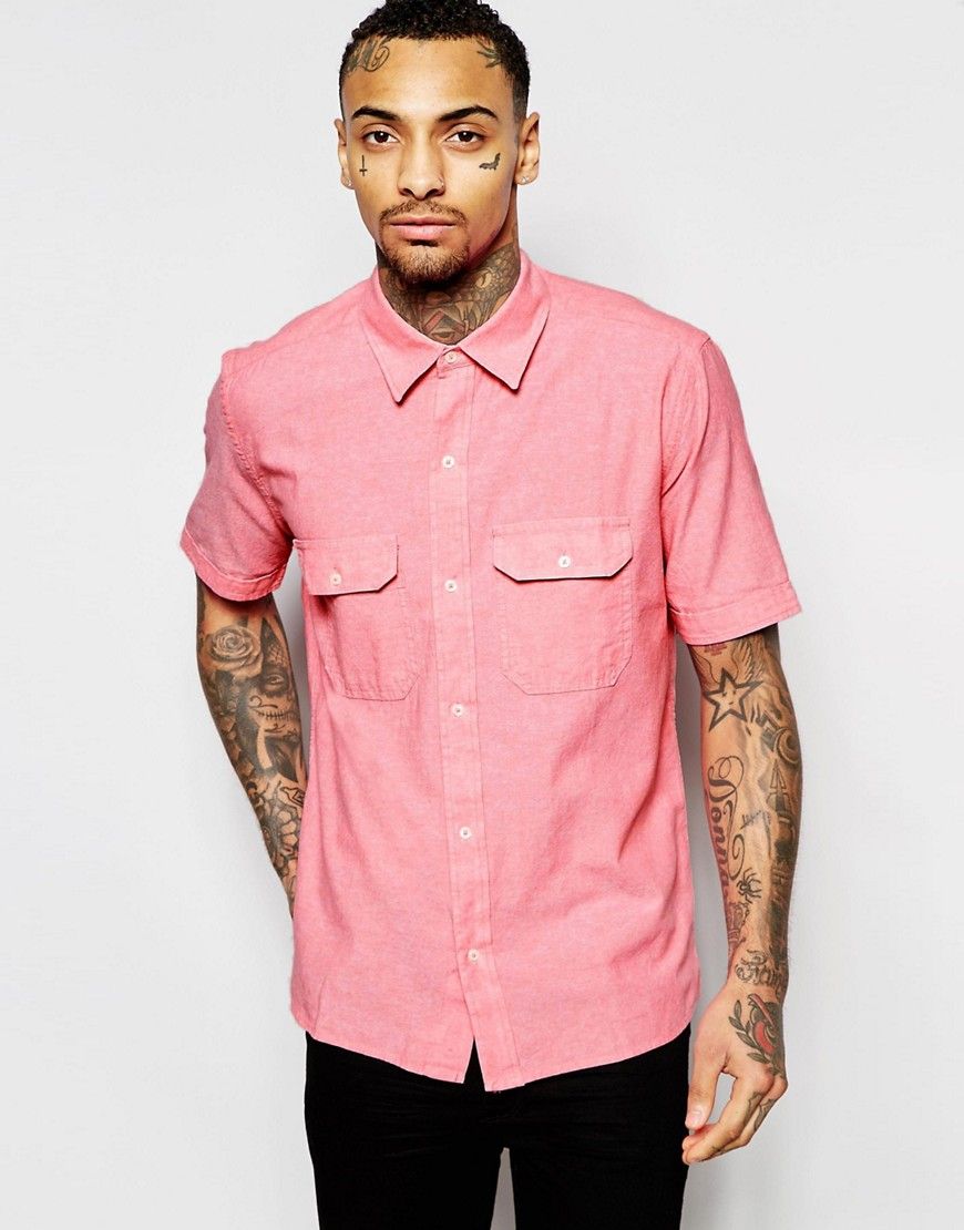 American apparel - - Chemise en chambray coupe classique à manches courtes - Rose