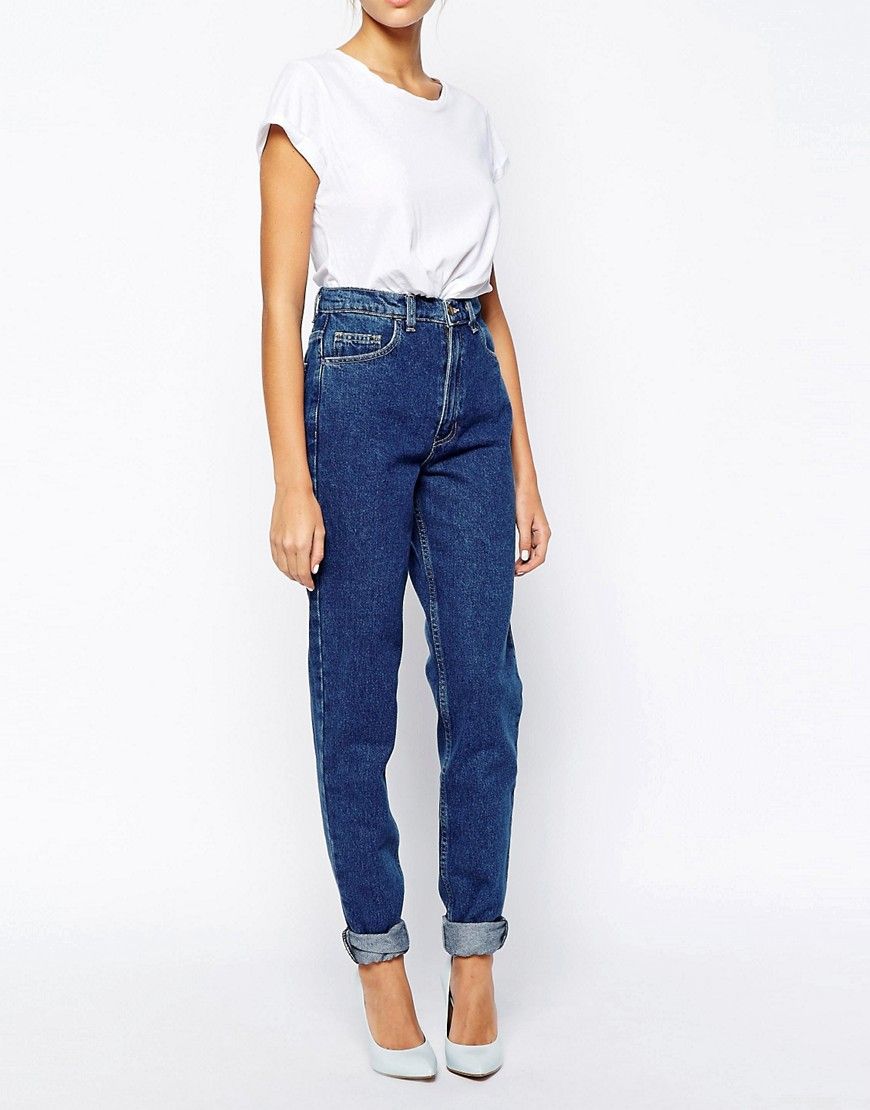 • American Apparel - Jean taille haute à délavage foncé - Bleu
