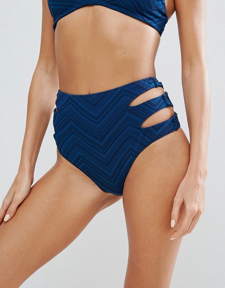 • Amuse Society - Bas de bikini taille haute motif chevrons texturés avec découpes - Bleu marine