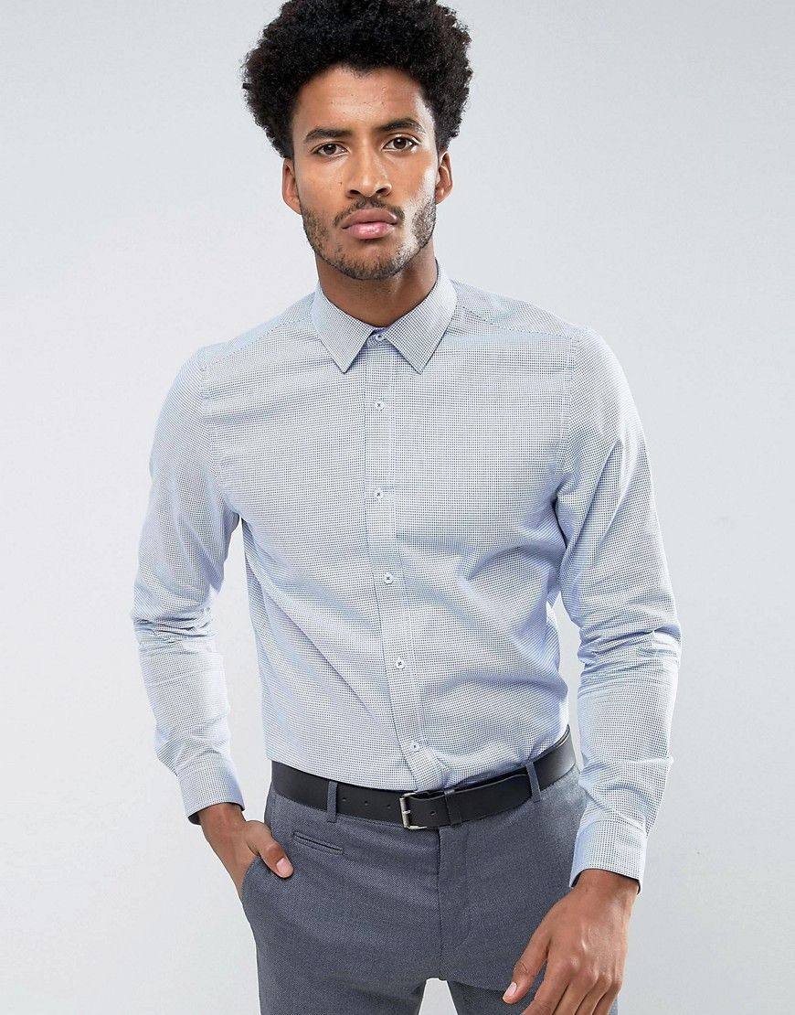 Ben sherman - - Chemise motif pied-de-poule - Bleu