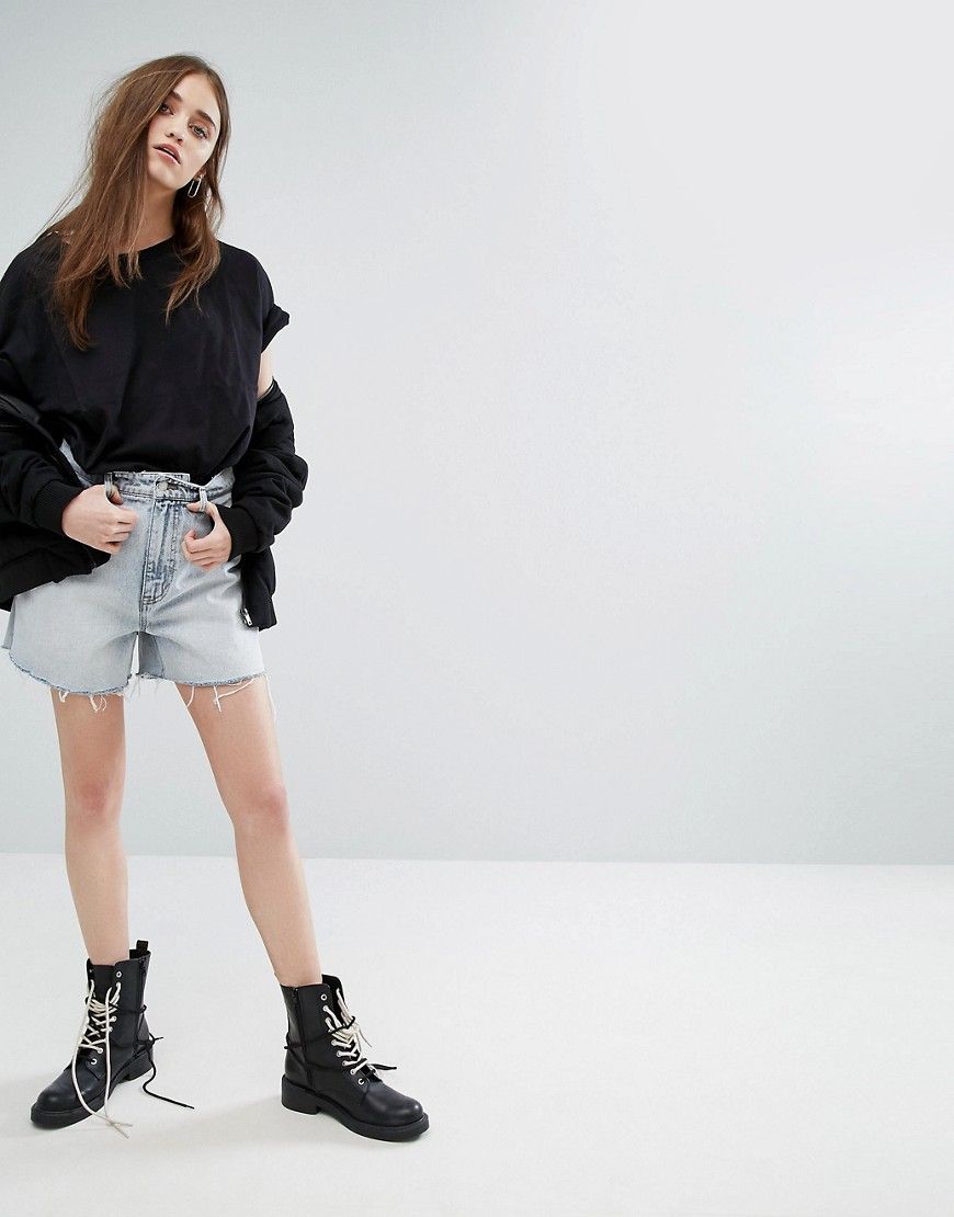 • Cheap Monday - Short boyfriend avec ourlet brut - Bleu