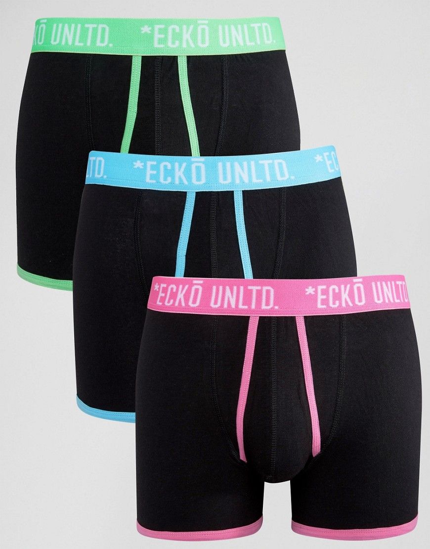 Ecko - - Lot de 3 boxers avec taille fluo contrastée - Noir