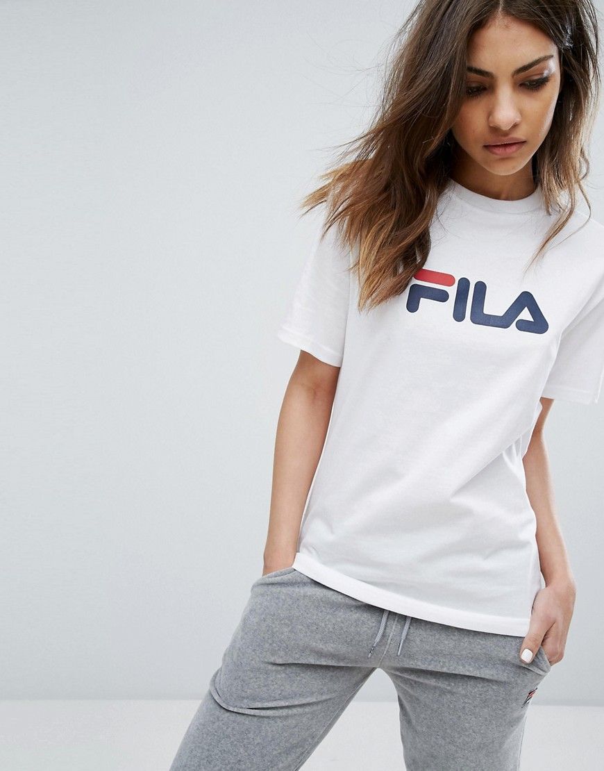 • Fila - T-shirt oversize coupe masculine avec logo sur la poitrine - Blanc