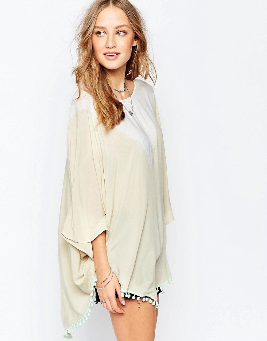 Top par Gypsy 05, Tissu ultra doux, Encolure bateau, Détail à effet tie-dye, Ourlet orné de pompons, Coupe décontractée, Nettoyage à sec par un professionnel, 100% rayonne, Le mannequin porte l'article en taille UK S / EU S / US XS et mesure 176 cm (5'9,5