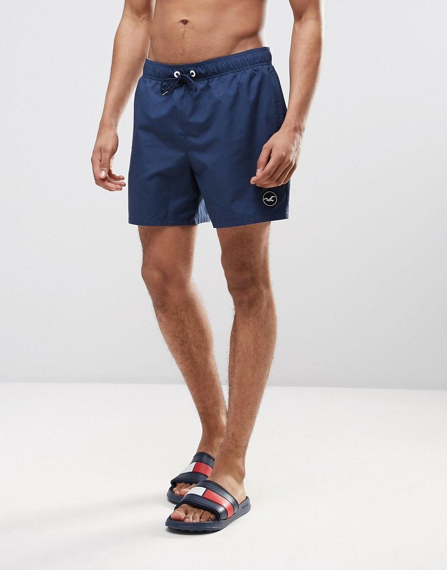 • Hollister - Guard - Short de bain uni avec logo mouette - Bleu marine - Bleu marine
