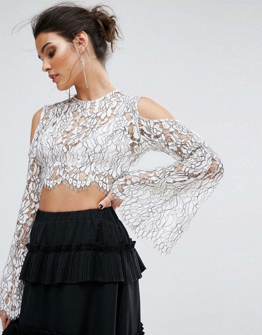 "Top par Keepsake, Dentelle frangée et transparente, Ras du cou, Épaules découvertes, Fermeture éclair au dos, Manches évasées, Coupe cintrée près du corps., Lavage à la main, 60% coton, 20% nylon, 20% viscose, Le mannequin mesure 173 cm (5'8") et porte l'article en taille UK S / EU S / US XS, Soutien-gorge non fourni. À PROPOS DE KEEPSAKE Les designers australiens de la griffe Keepsake run with a trend-led aesthetic, keeping things freshly feminine but with a focus on wear-ability. S'inspirant de la très haute couture, Keepsake rework sheer chiffon and lace skater skirts and dresses with dipped hems, cut-out details and statement prints."