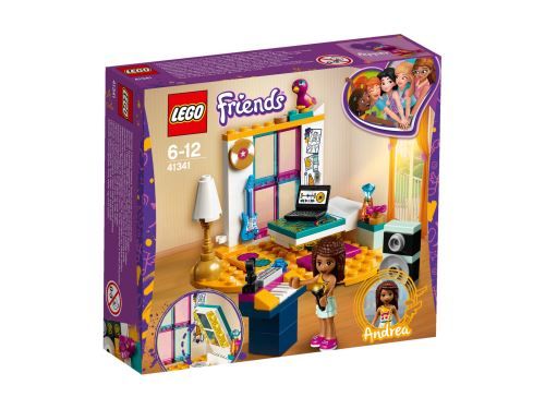 Lensemble LEGO® Friends 41341 La chambre dAndréa comporte une base jaune en forme de cur et reflète à merveille la passion dAndréa pour la musique et le spectacle. Son lit se replie dans larmoire pour créer une zone dressing ou une salle de répétition où son ami le perroquet a également sa place. Elle a aussi un piano, une guitare, un haut-parleur, une lampe et un ordinateur portable pour mixer ses propres chansons. Inclut une mini-poupée et une figurine de perroquet.