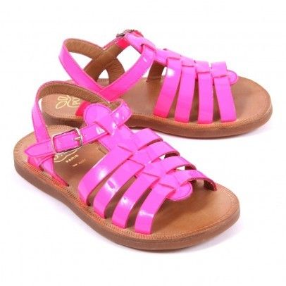 Pom d'api - Sandales Plagette Strap Rose fluo