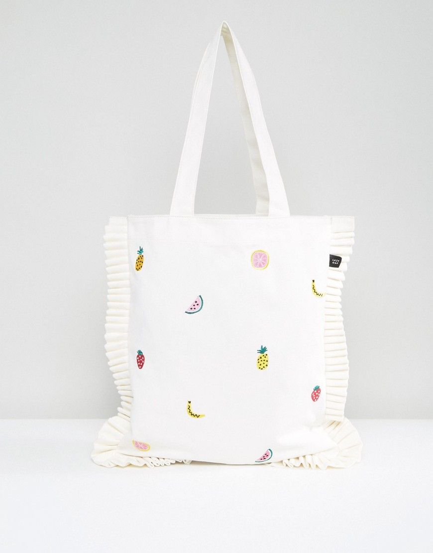 • Lazy Oaf - Fourre-tout à volants et fruits brodés - Blanc
