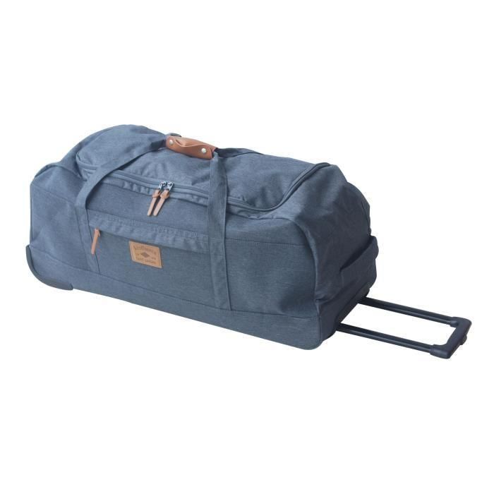 Sac de voyage 2 roues en polyester de coloris gris. Fermeture zippée. Syst?me trolley avec bouton poussoir ajustable en hauteur. Poignée de portage latérale. Deux anses reliées par un rabat auto-agrippant. Un compartiment principal, une poche frontale zippée. Dimensions : 80 cm.