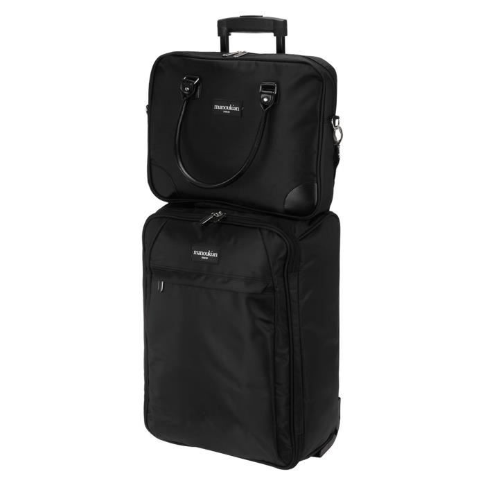 Manoukian - Valise Cabine 2 Roues 50 cm Noir + Sacoche Ordinateur