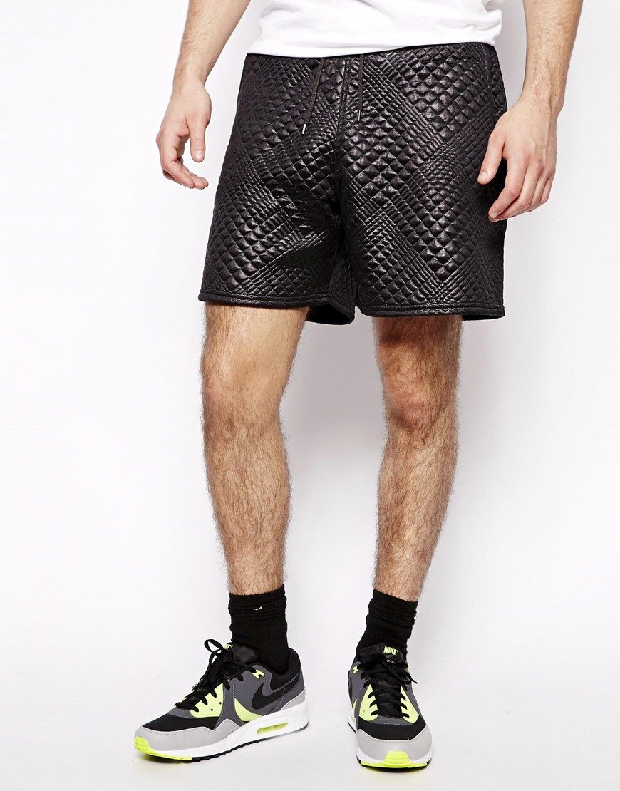 Short par Blood Brother Article fabriqué en similicuir Modèle entièrement matelassé Taille élastique avec cordon de serrage Poches en biais sur les côtés Coupe classique
