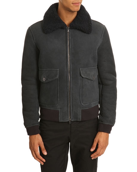 • Blouson aviateur mouton retournĂ© bleu denim