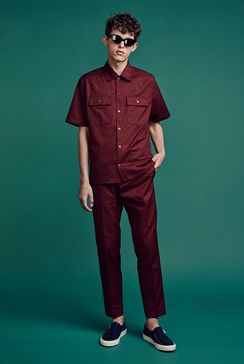 Authentic safari inspired short sleeved shirt with buttoned chest pockets constructed in classic workwear twill. The shirt has a pointed collar, side vents, slightly longer back than front and subtle tone-in-tone AA embroidery at the front - Cutlines above the chest pockets. - Branded buttons throughout. - Composition: 65% Polyester, 35% Cotton