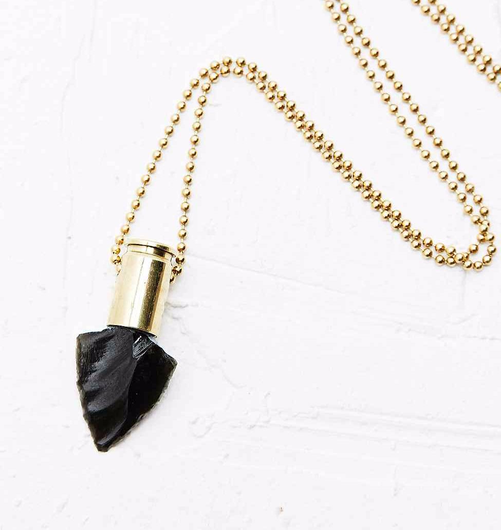 Pendentif flèche obsidienne noir et doré