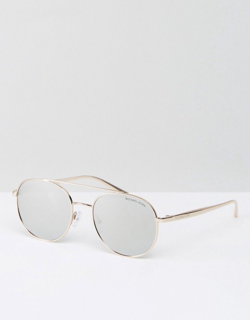 • Michael Kors - Lunettes de soleil d'aviateur rondes avec verres miroir argentés - Rose - Rose