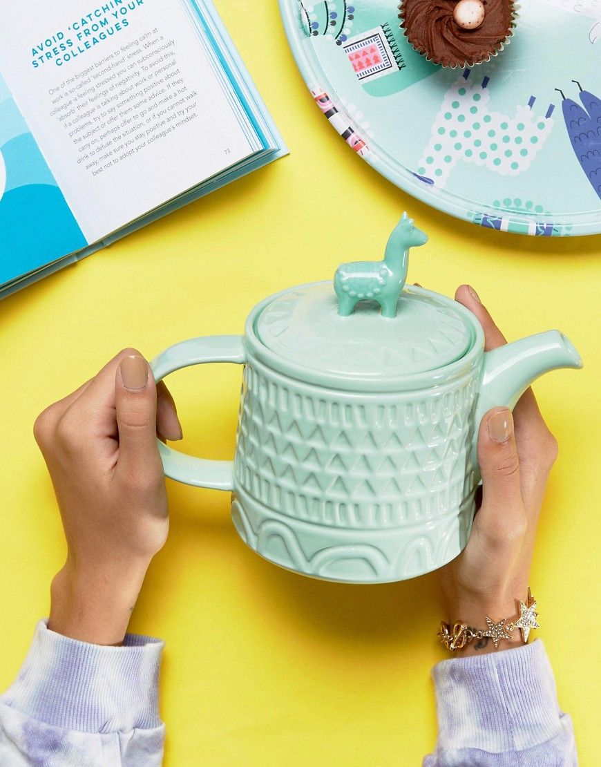 Teapot by Paperchase, Fini vert menthe, Couvercle lama, Bec verseur pratique, Lavage à la main, 100% céramique. À PROPOS DE PAPERCHASE Paperchase are a design-led bunch, set firmly on a mission to make your stationery a whole lot sweeter. Célébrez les grands moments de la vie avec leurs cartes, papiers cadeau et autres cadeaux super sympa.