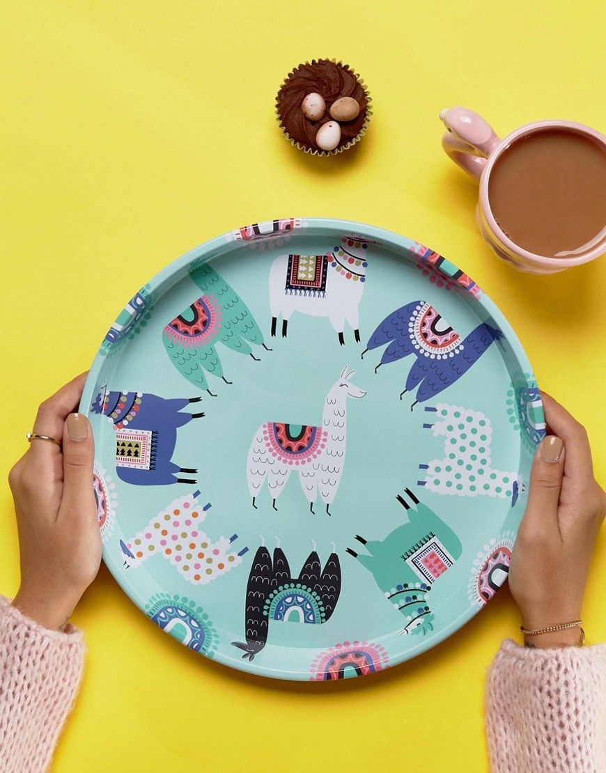 • Paperchase - Plateau en métal à motif lamas - Multi