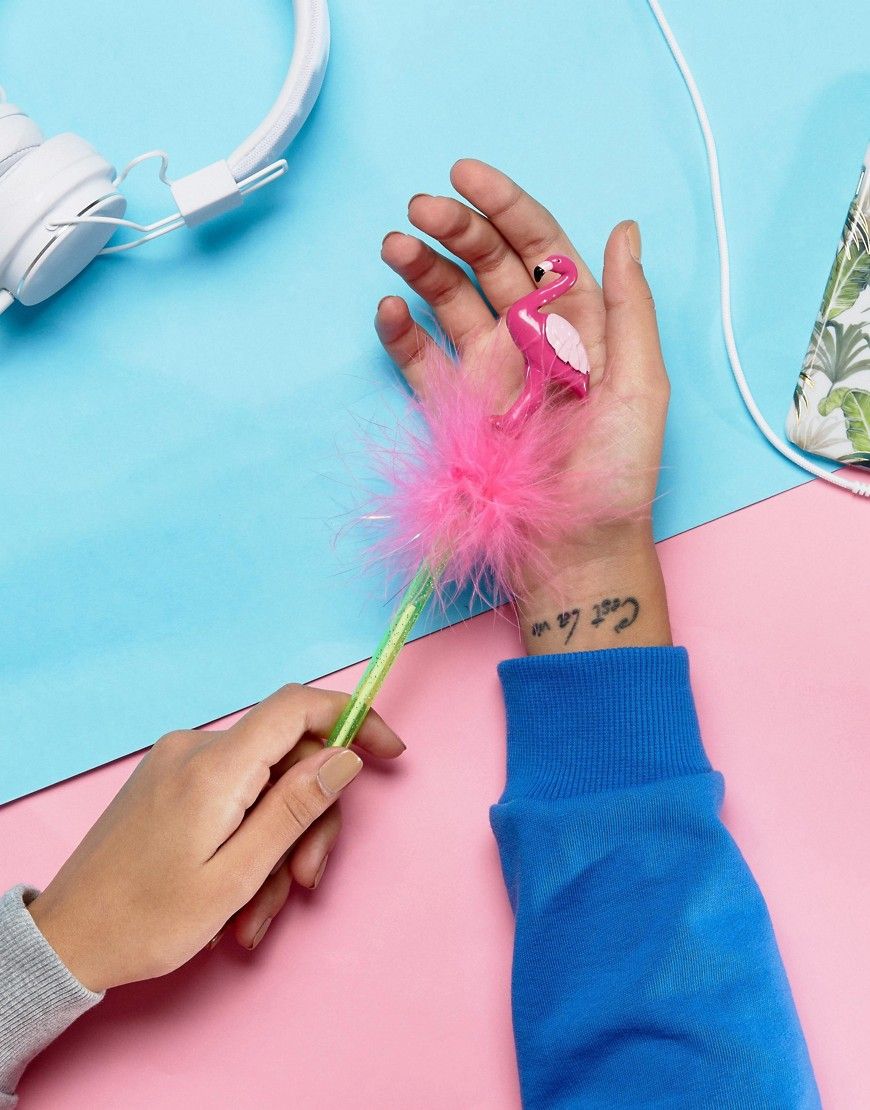 • Paperchase - Stylo flamant rose duveteux - Multi