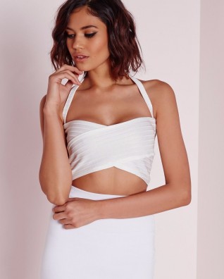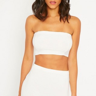 Helsa Cream Slinky Bandeau Crop Top