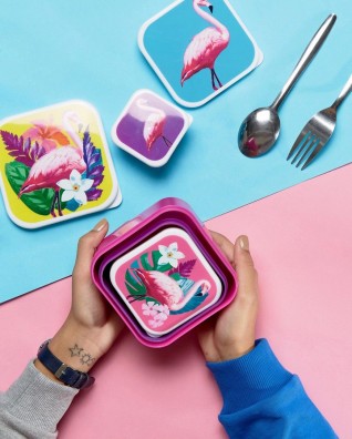 Paperchase - Boîtes à goûter motif flamant rose - Multi