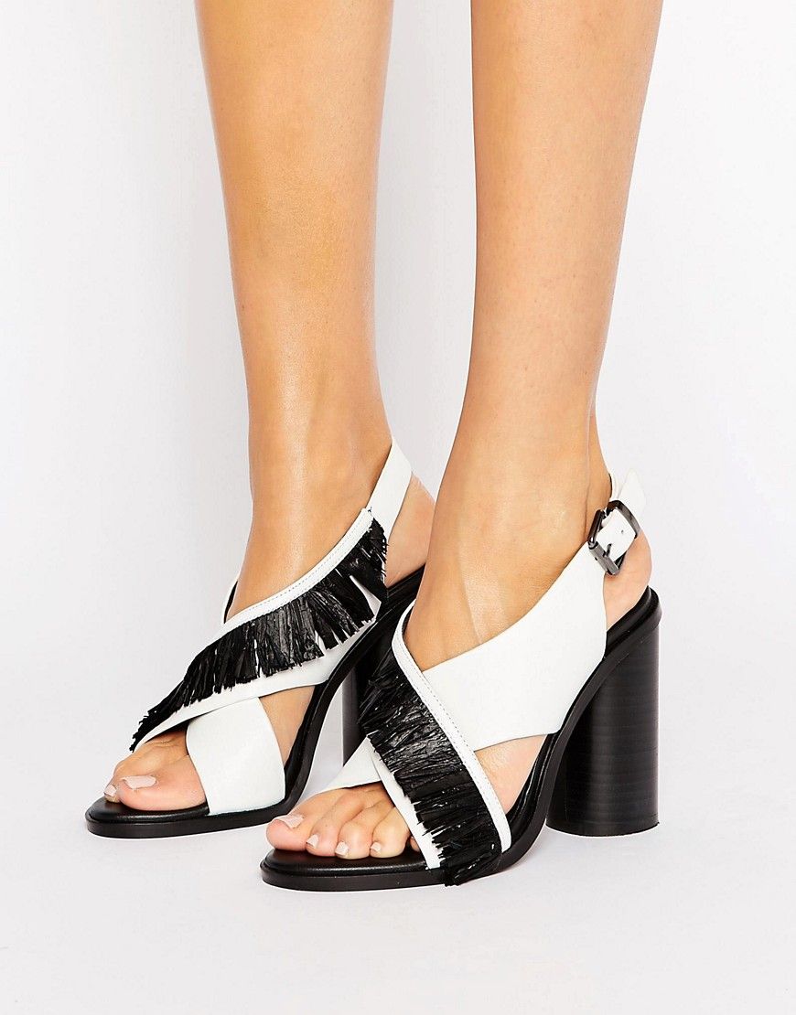 Chaussures à talons par Sol Sana, Tige en cuir, Bride cheville à boucle, Devant cache-cœur, Modèle à franges, Bout ouvert, Talons hauts, Traiter avec un agent protecteur pour cuir, Tige : 100% cuir véritable, Talon : 10 cm (4 po). À PROPOS DE SOL SANA Weaving together creator Sara Caverley's love of vintage and bold modern styles, Australian-based label Sol Sana was launched in 2010. La marque met l'accent sur le confort et la résistance, tout en se dotant des meilleurs matériaux ; attendez-vous à découvrir des chaussures ornées de barrettes, des escarpins audacieux et des bottines fabriquées dans des cuirs de haute qualité.