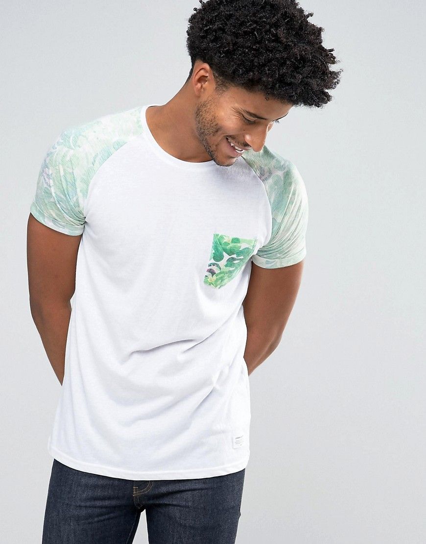 • Solid - T-shirt manches raglan avec poche contrastante - Blanc