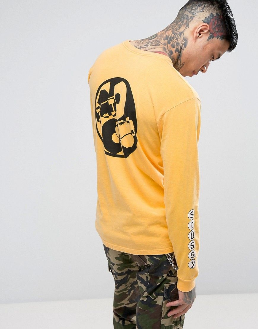 • Stussy - T-shirt manches longues à imprimé au dos - Jaune