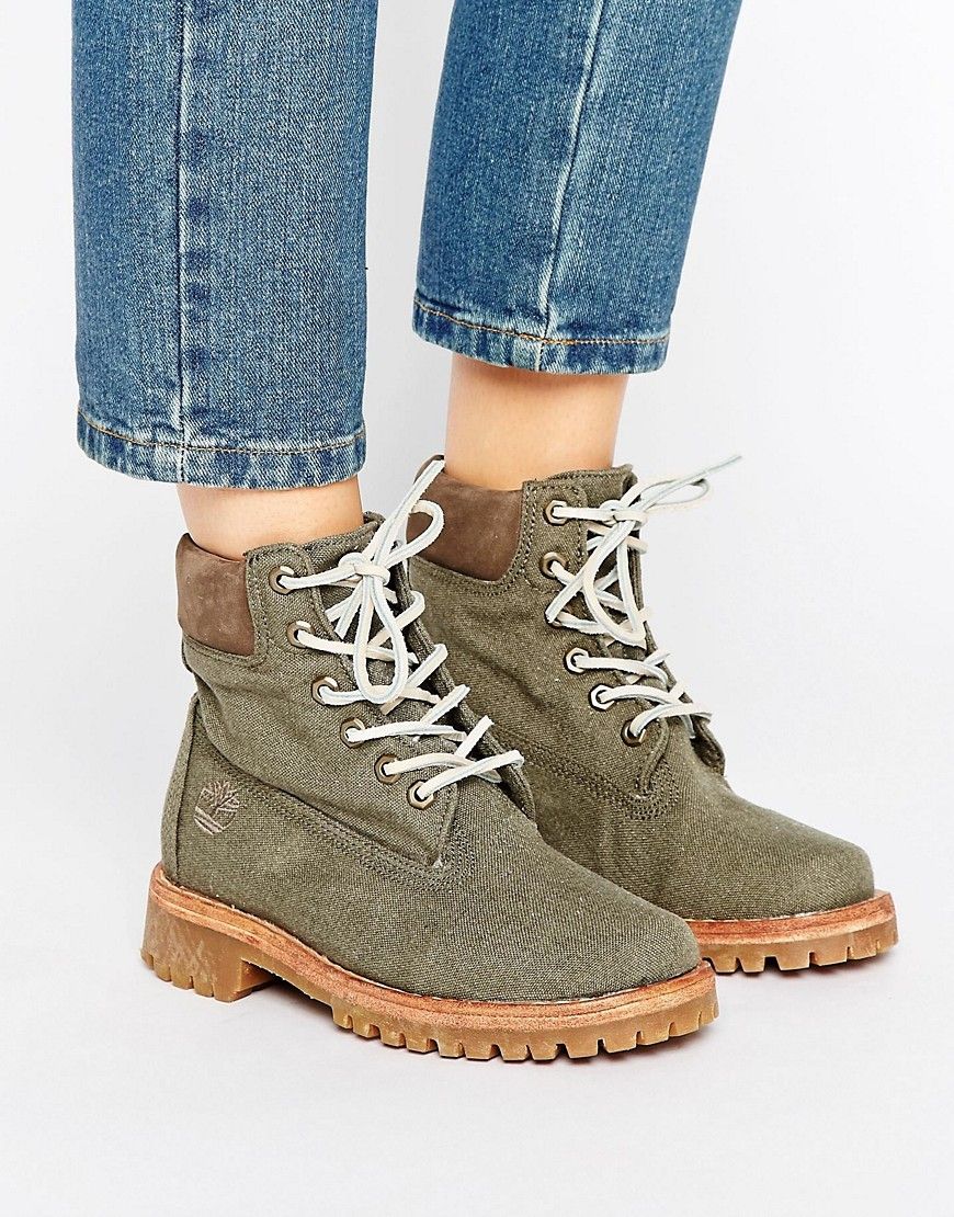 Timberland - - Bottines plates à lacets en tissu 6 pouces - Vert