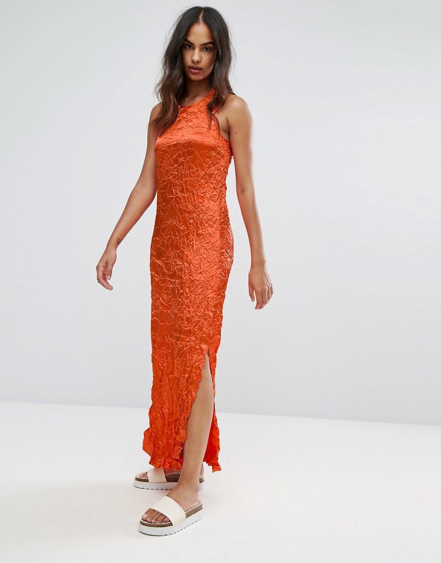 Warehouse - Premium Crinkle Fabric Twist Back Maxi Dress - Orange