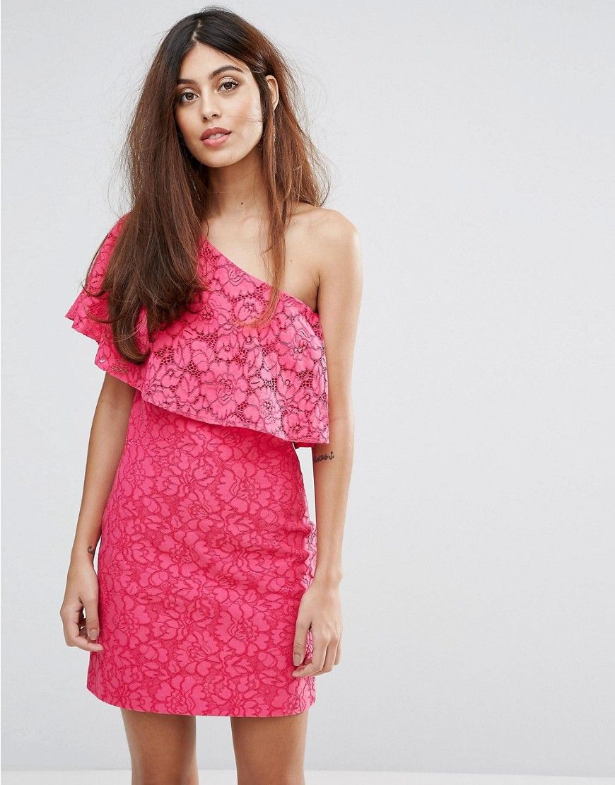 • Warehouse - Robe asymétrique en dentelle non tissée - Rose