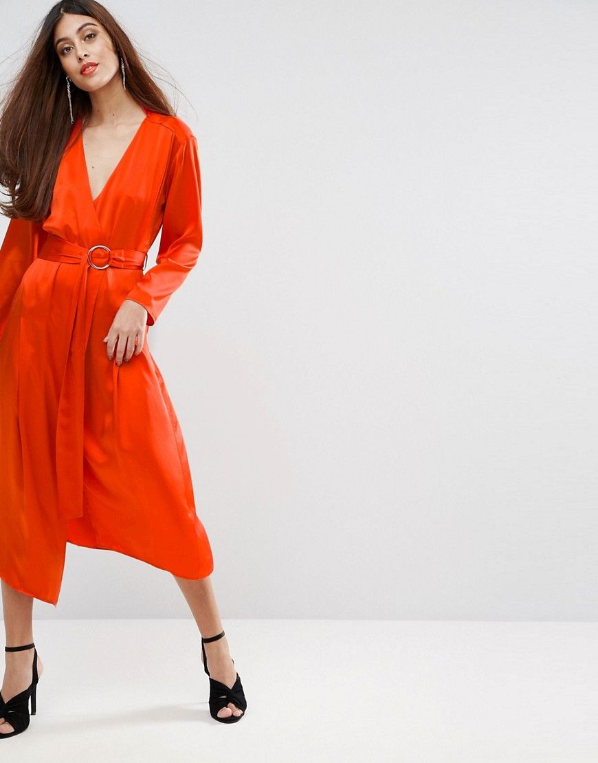 • Warehouse - Robe portefeuille mi-longue en soie de qualité supérieure - Orange