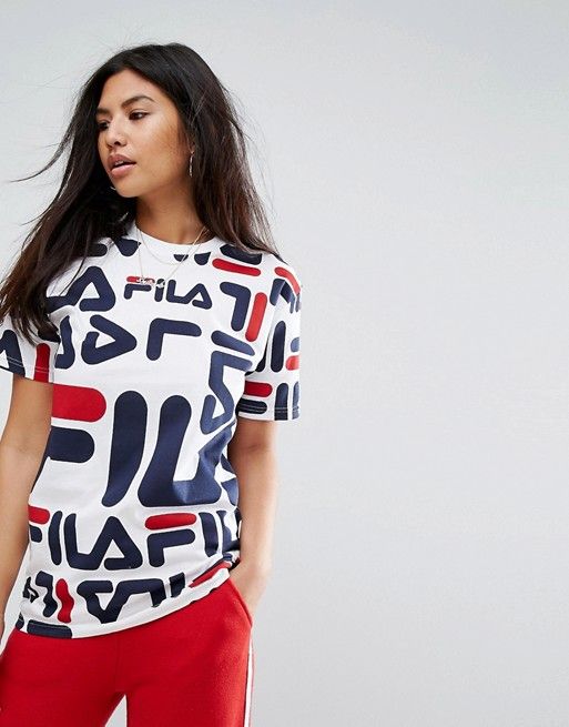 • Fila - T-shirt boyfriend oversize avec logo sur l'ensemble