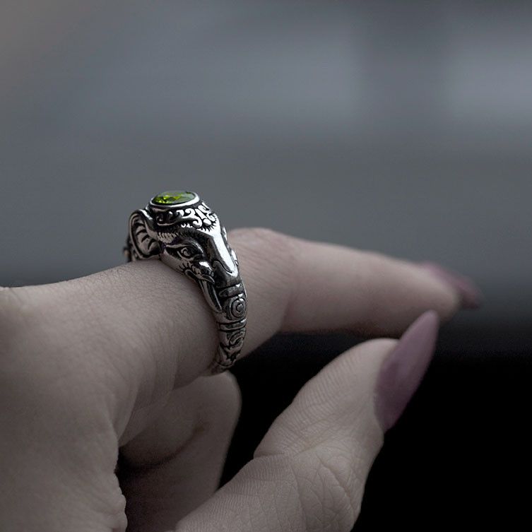 • Gajah Indian Elephant Sterling Silver Peridot Ring