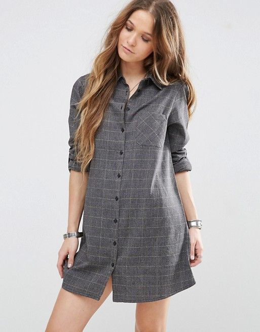 Glamorous - - Robe chemise à manches longues et carreaux discrets