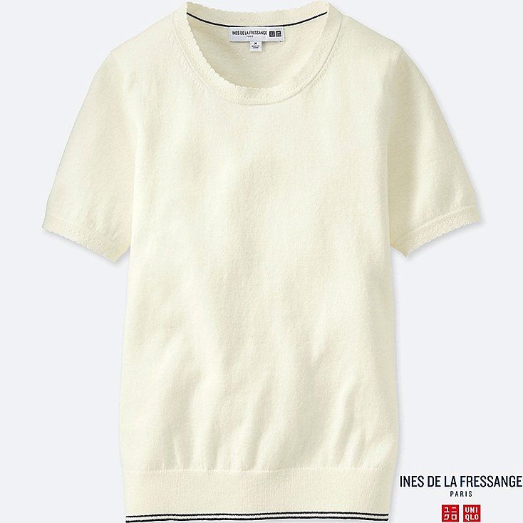 Uniqlo - INES PULL COTON CACHEMIRE COL ROND MANCHES COURTES FEMME