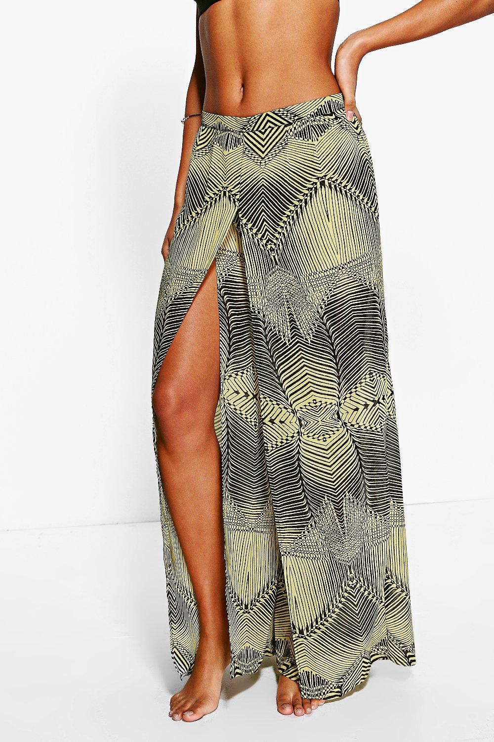 Boohoo - Lola Pantalon De Plage Abeille Fendu Aux Jambes