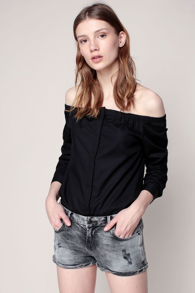 Noisy may - Blouse noire à col bardot élastiqué Naomi