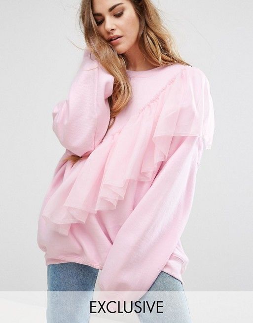 Reclaimed vintage - Reclaimed Vintage - Sweat oversize avec volants en tulle