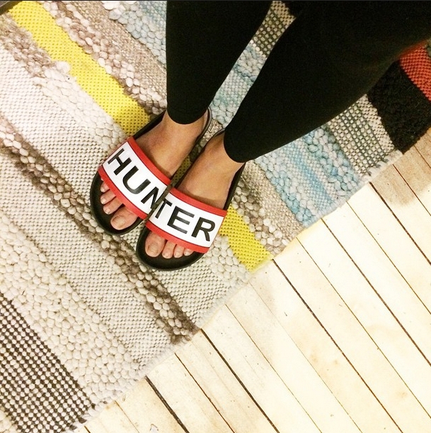 Hunter - Sandales Plates Logo Blanc