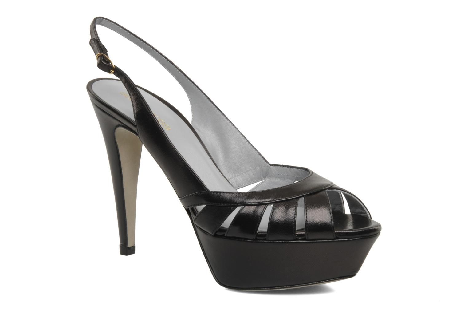 Sandales Sergio Rossi Satriano pour femme, en cuir doublé, à bout rond et ouvert, retenues par une bride à la cheville, montées sur une semelle de cuir, avec un talon de 12 cm et un plateau de 4 cm. La semelle intérieure est non amovible. Les mesures sont réalisées sur une pointure 38. On ose prendre de la hauteur en grimpant sur les talons d 12 des sandales Satriano par Sergio Rossi, tempérées par un large patin confortable. Des souliers de vamps qui font grimper votre côte fashion !