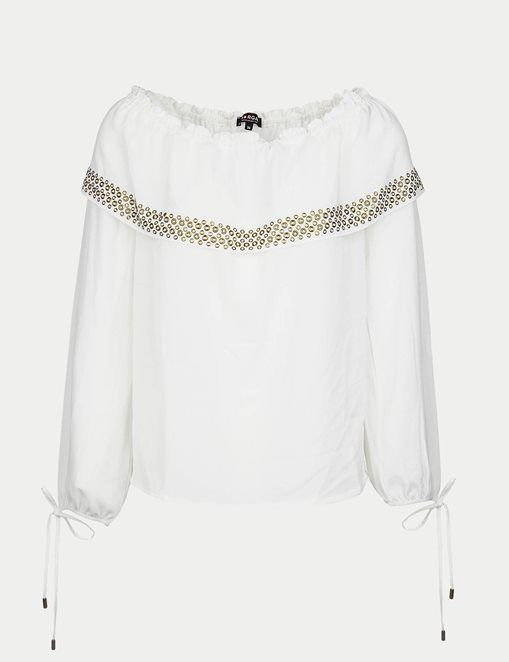 Morgan - Top smocké volant oeillets métal