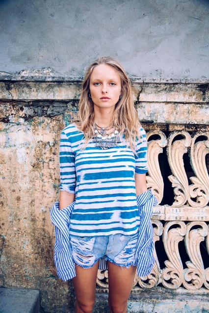 Arnhem - Weekender 3/4 Sleeve Seagreen Stripe