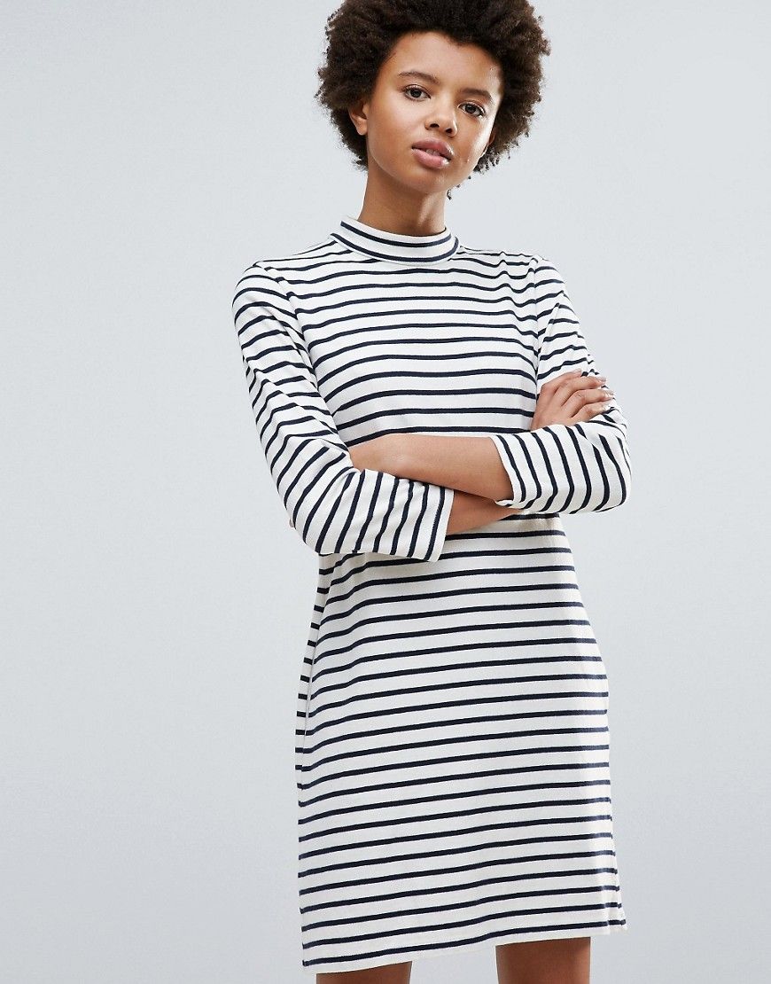 "Robe par Wood Wood, Molleton doux, Motif rayÃ, Col montant, Manches trois-quarts, Coupe classique taillant normalement, Lavage en machine, 100% coton, Le mannequin mesure 175 cm (5'9") et porte l'article en taille UK S / EU S / US XS. La griffe danoise culte Wood Wood a Ãtà conçue à l'origine par les anciens Ãtudiants en design Brian SS Jensen, Karl-Oskar Olsen & Magnus Carstensen in 2002. Avec un mÃlange de streetwear casual et de haute couture, Wood Wood crÃe des silhouettes ÃpurÃes et minimalistes où se superposent pulls, robes et pièces dÃpareillÃes en jersey : naturellement tendance."